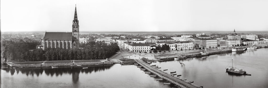 Englundin mestariteos, panoraamakuva Porin kirkon tornista koostui yhdeksästä 24 x 18 cm kokoisesta lasinegatiivista.