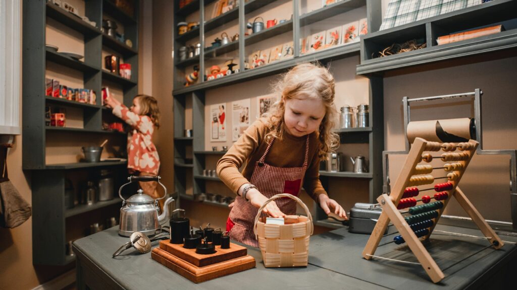 Satakunnan Museon Pikku-Pekkalassa pääsee leikkien avulla 1900-luvun alun kaupankäynnin tunnelmaan. Vuoden 1938 Porin kaupunkikartasta tehdyllä liikennematolla voi huristella menemään pikkuautoilla tai viedä vaikka lehmät laitumelle. Talonpoikaispirtin kupeessa pääsee kokeilemaan vanhoja työkaluja. Tämän lisäksi voi kiikutella keinutuolissa tai lepuuttaa jalkoja 1970-luvun olohuoneessa.
